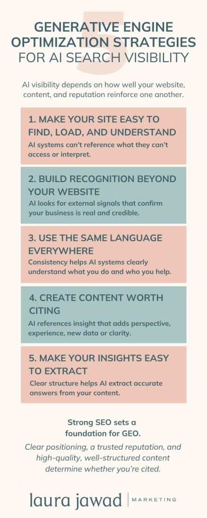 For small, service-based businesses, the most sustainable approach isn’t optimization for a single platform. It’s clarity, credibility, and consistency applied everywhere your expertise shows up.